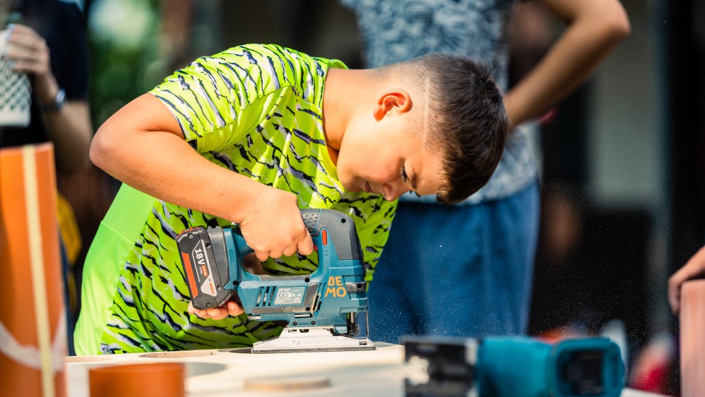 A DEMO Műhelyben olyan foglalkozásokat tartunk, ahol a fiatalok valódi szerszámokkal dolgozhatnak, és végig részt vesznek a gyártás teljes folyamatában. Megtapasztalják, hogyan lesz egy darab deszkából valódi kisbútor, vagy hogyan indulhat el egy karakter skicc saját története néhány átrajzolt mozdulattal. Fontos számunkra, hogy közben vágjunk, ragasszunk, tépjünk, firkáljunk, és akár a mesterséges intelligenciát is segítségül hívjuk – például ha a 3025. évi színtrendekre vagyunk kíváncsiak. A formatervező workshopon a résztvevők kézi kisgépekkel készítik el saját sámlijukat, melyre az MI által generált mintákat visznek fel képtranszfer technikával. Az animációs workshopon futurisztikus sámlikat rajzolunk, majd megmozgatjuk őket, így készül el a Sámli a jövőből című kisfilm, MI által generált hanghatásokkal kiegészítve.