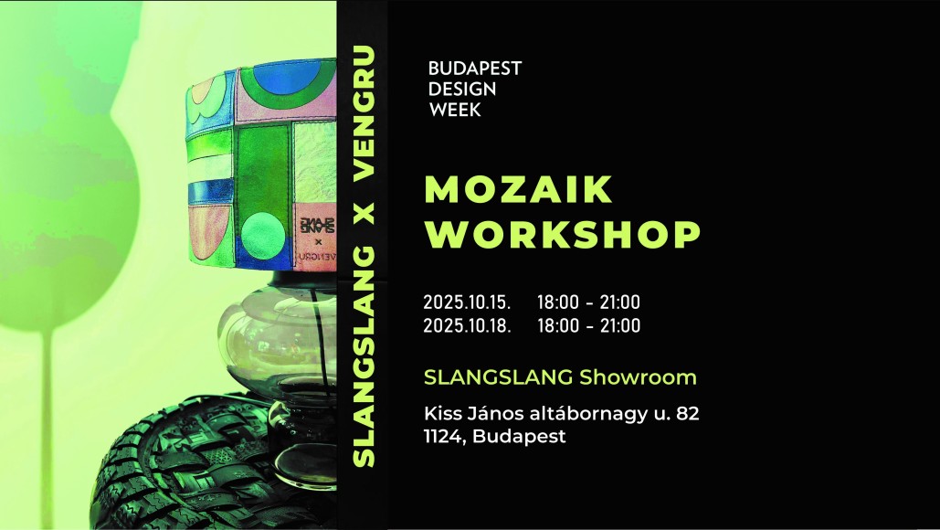 A Vengru és a Slang Slang közös Mozaik Lámpabúra Workshopján a résztvevők saját kezűleg készíthetnek egyedi lámpaburát különféle szabászati melléktermékek felhasználásával. A foglalkozás elején a résztvevők megismerkednek az elérhető anyagokkal, valamint inspirációt kapnak a tervezéshez. A lámpabúrák különböző textil- és bőrmaradékok kreatív összeállításával, ragasztási technikával készülnek, így a munkafolyamat nem igényel varrási előképzettséget. A szerkezet megerősítését és tartósságát a workshopvezetők varrással biztosítják. A résztvevők szabadon kísérletezhetnek színekkel, formákkal és anyagkombinációkkal, ennek köszönhetően a végeredmény minden esetben egy teljesen egyedi, funkcionális és esztétikus lámpabúra lesz. A foglalkozás nemcsak az újrahasznosítás kreatív lehetőségeit mutatja meg, hanem egy közösségi és inspiráló alkotói élményt is nyújt. A workshop minden szükséges alapanyagot és eszközt biztosít a résztvevők számára.